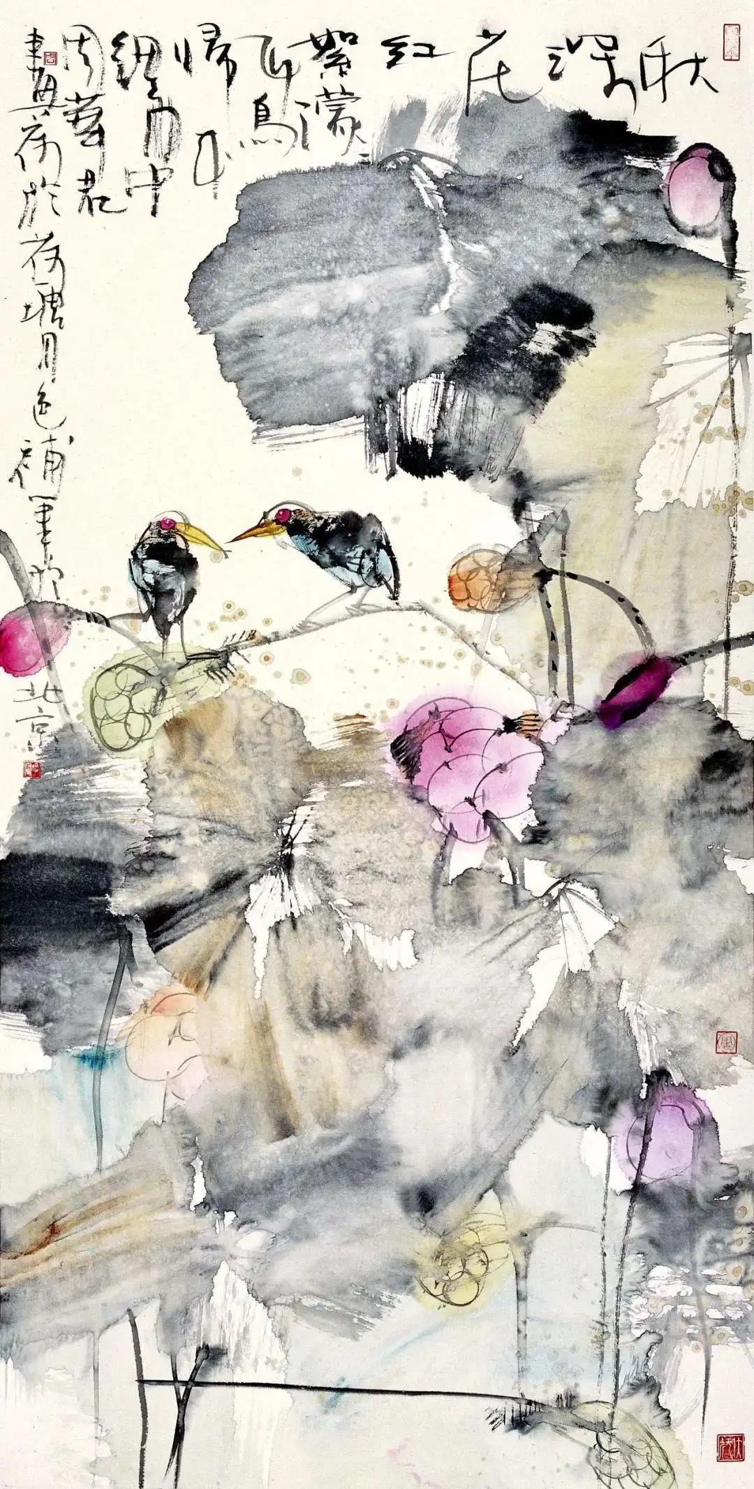 周华君多思善悟,笔端的山水、人物、花 、鸟兽无不生气流行,飘逸“俊发”之气息扑面而来,尤其擅长画荷,其落笔写荷,秀逸潇洒,散发迷人之清香。